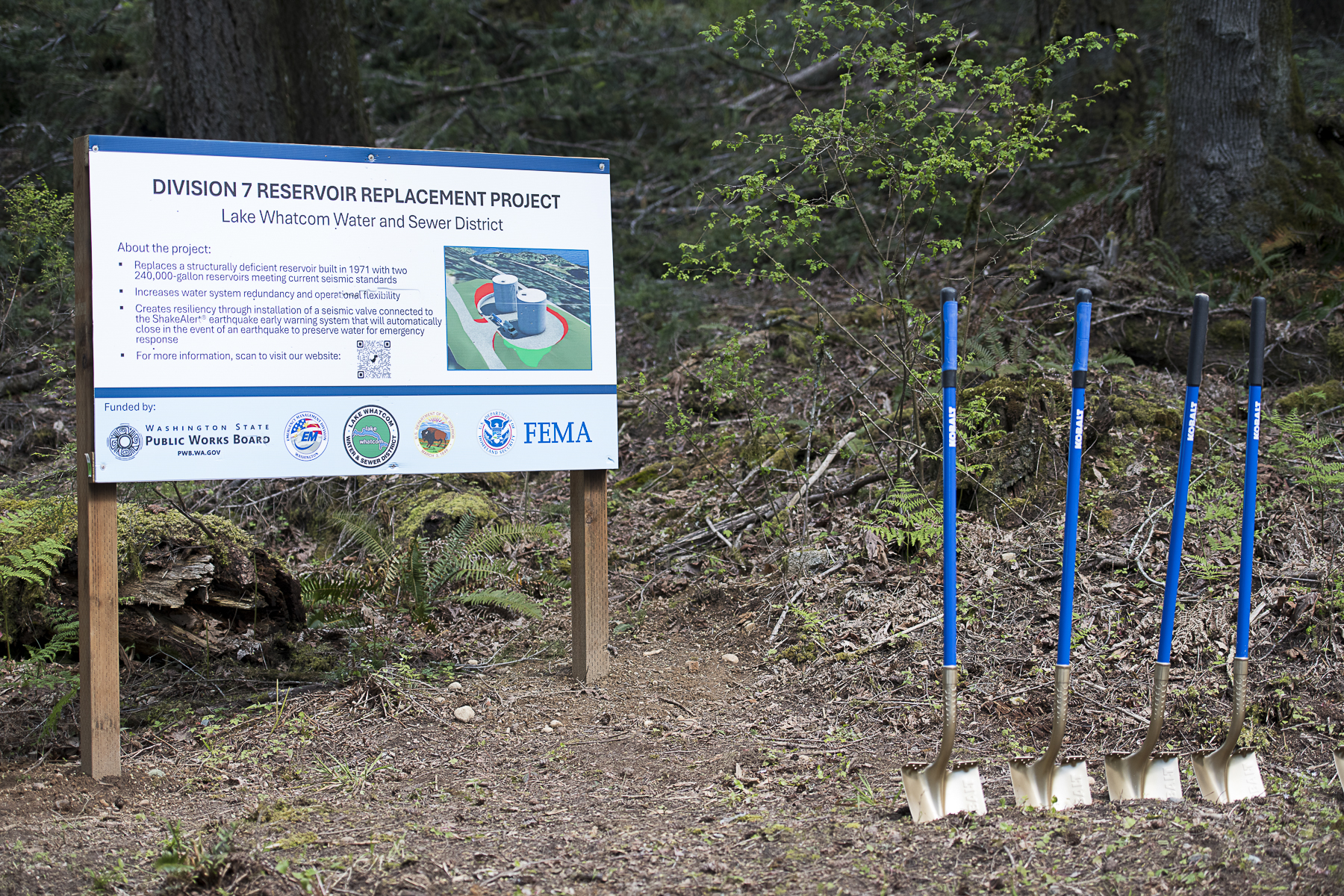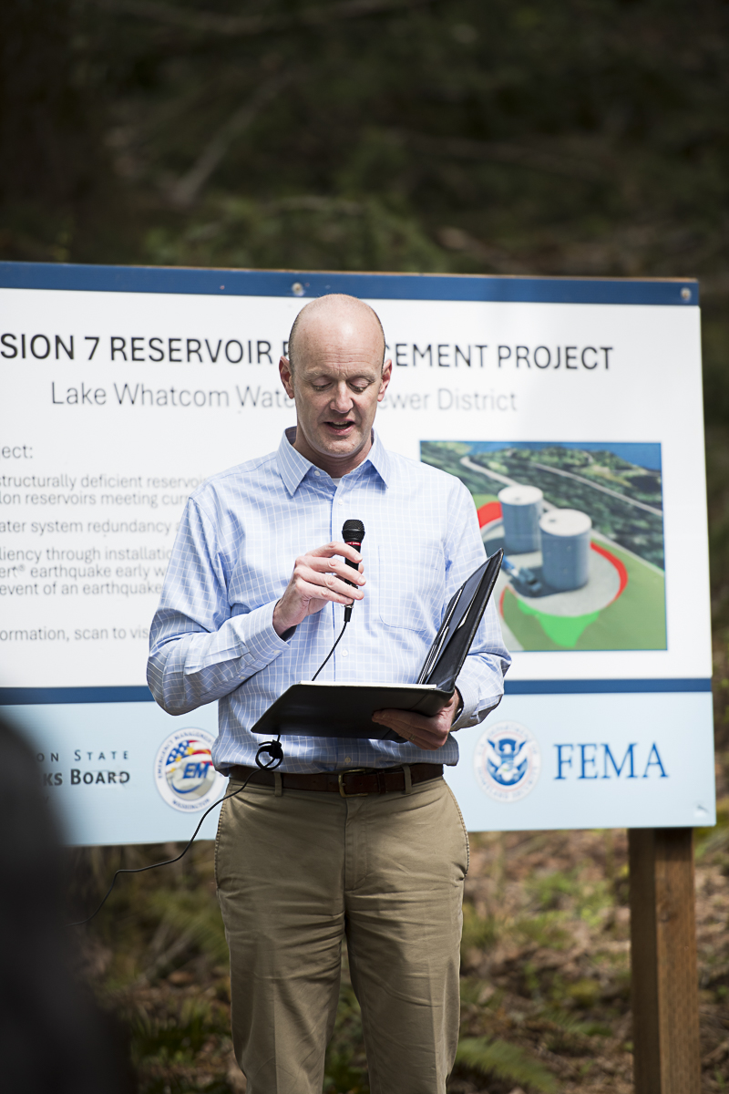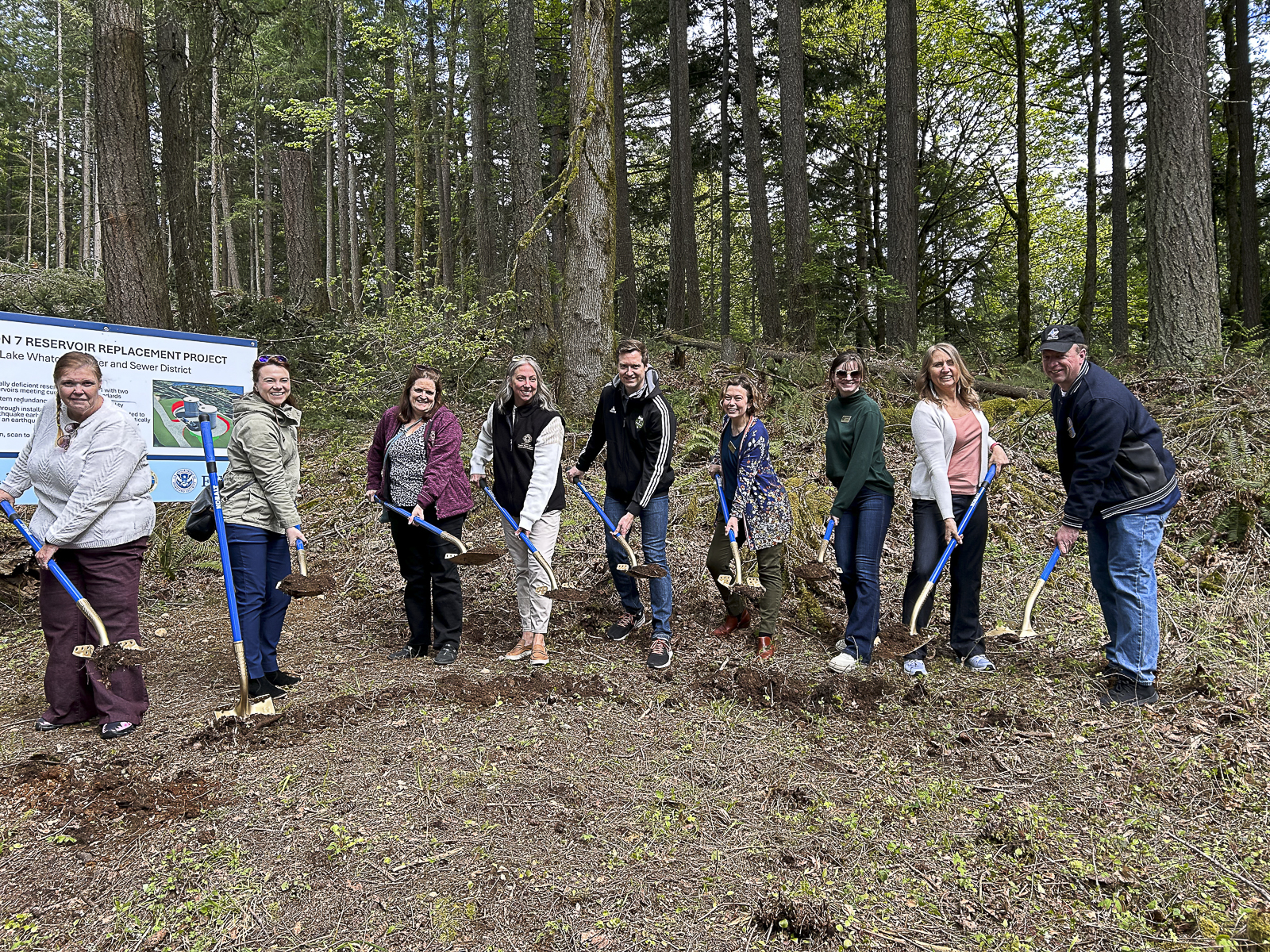 Earlier this month, District staff and guests gathered in Sudden Valley to break ground on two new reservoirs, which will replace an aging reservoir currently in use. The new reservoirs will meet current seismic standards as well as sporting the ShakeAlert® earthquake early warning system. Construction, including removal of the old reservoir, is on track to be completed over the next 18 months.