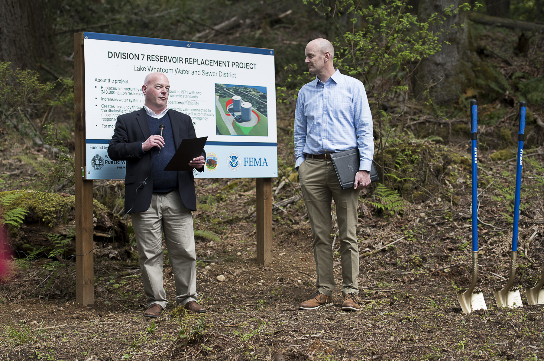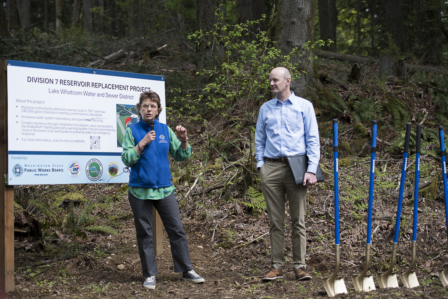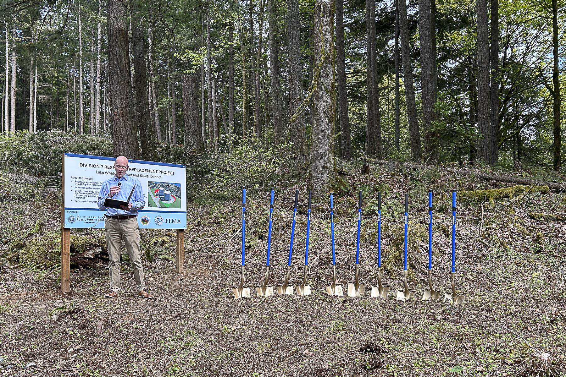 Earlier this month, District staff and guests gathered in Sudden Valley to break ground on two new reservoirs, which will replace an aging reservoir currently in use. The new reservoirs will meet current seismic standards as well as sporting the ShakeAlert® earthquake early warning system. Construction, including removal of the old reservoir, is on track to be completed over the next 18 months.